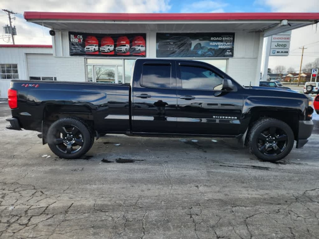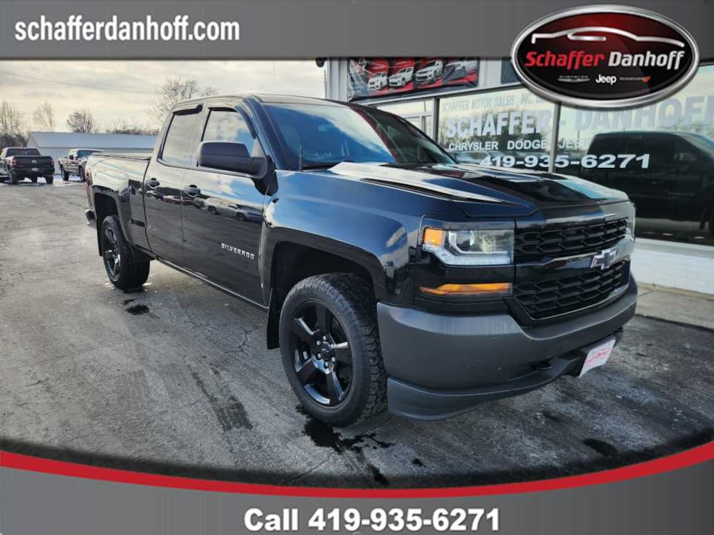 includes (NZQ) 20 x 9 Black-painted aluminum wheels, (QT0) P275/55R20 all-season, blackwall tires, (SFZ) Black bowties, LPO, (TRB) body-color grille surround, (HQX) body-color headlamp bezel and (AKO) deep tinted glass, includes trailer hitch, 7-pin and 4-pin connectors Includes (G80) locking rear differential. All cabs include (AKO) tinted windows, (KI4) 110V outlet, (AQQ) Remote Keyless Entry, (A91) remote locking tailgate and (DL8) power mirrors. (includes drivers side spotter mirror) (Black. with seek-and-scan and digital clock, includes Bluetooth® streaming audio for music and select phones (STD), includes aluminum block construction with (FHS) E85 FlexFuel capability, capable of running on unleaded or up to 85% ethanol (285 hp [212 kW] @ 5300 rpm, 305 lb-ft of torque [413 Nm] @ 3900 rpm) (STD) (Includes (FHS) E85 FlexFuel capability. with overdrive and tow/haul mode. Includes Cruise Grade Braking and Powertrain Grade Braking (STD). Chevrolet Work Truck with Black exterior and Dark Ash with Jet Black Interior Accents interior features a V6 Cylinder Engine with 285 HP at 5300 RPM*.