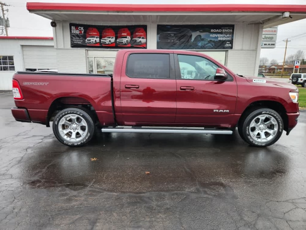 ENGINE: 5.7L V8 HEMI MDS VVT ETORQUE Active Noise Control System, Heavy Duty Engine Cooling, Passive Tuned Mass Damper, GPEC 5 Engine Controller, GVWR: 7,100 lbs, Dual Rear Exhaust w/Bright Tips, HEMI Badge, 23 Gallon Fuel Tank, 18 Aluminum Spare Wheel, BIG HORN LEVEL 2 EQUIPMENT GROUP Google Android Auto®, SiriusXM Radio Service, Bluetooth® Handsfree Phone & Audio, USB Host Flip, Rear Window Defroster, For Details, Visit DriveUconnect.com, Integrated Center Stack Radio, ParkSense Front/Rear Park Assist w/Stop, Rear View Auto Dim Mirror, Power Adjustable Pedals, Rear Power Sliding Window, Rear Dome w/On/Off Switch Lamp, Connectivity - US/Canada, Glove Box Lamp, 4G LTE Wi-Fi Hot Spot, 115V Auxiliary Rear Power Outlet, Media Hub w/2 Charge Only USBs, Exterior Mirrors w/Heating Element, Power 8-Way Driver Seat, Auto Dim Exterior Driver Mirror, Heated Front Seats, Radio: Uconnect 5 W w/8.4 Display, Heated Steering Wheel, 8.4 Touchscreen Display, Class IV Receiver Hitch, Security Alarm, Black Premium Power Mirrors, Apple CarPlay®, Big Horn IP, WHEELS: 20 X 9 ALUMINUM CHROME CLAD (WRK), DELUXE CLOTH BUCKET SEATS Power 8-Way Driver Seat, Bucket Seats, Manual Adjust 4-Way Front Passenger Seat, Full Length Floor Console, Rear Center Armrest, Delete LED Lamp - Floor Console Bin, Power 2-Way Driver Lumbar Adjust, TRANSMISSION: 8-SPEED AUTOMATIC (8HP75). Ram Big Horn with Delmonico Red Pearlcoat exterior and Black interior features a 8 Cylinder Engine with 305 HP at 6400 RPM*.